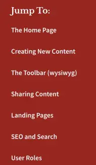 Each heading automatically becomes an anchor link in the red column to the right of the FAQ sections. This allows visitors to navigate quickly to a specific section.