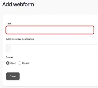 2. Give your webform a title and choose open or closed for the webform's status. It is best to have your webform closed until it is completed and you are actively wanting submissions. You can also add a description of your webform. The description is just for your reference and will not display on the actual form.