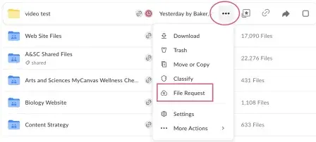 - Click the ellipses to see options and then select "File Request." This will open a File Request window.