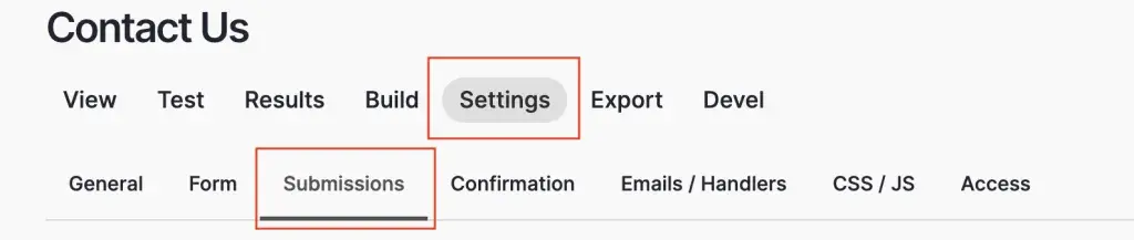 - When editing your webform, go to the 'settings' section and then choose the 'submissions' tab