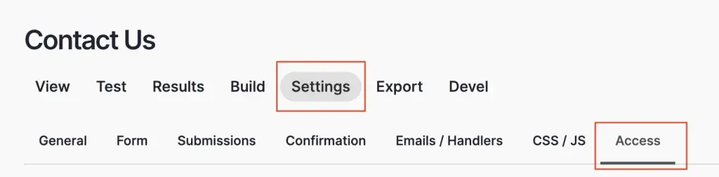 - When editing your webform, go to the 'settings' section and then choose the 'access' tab