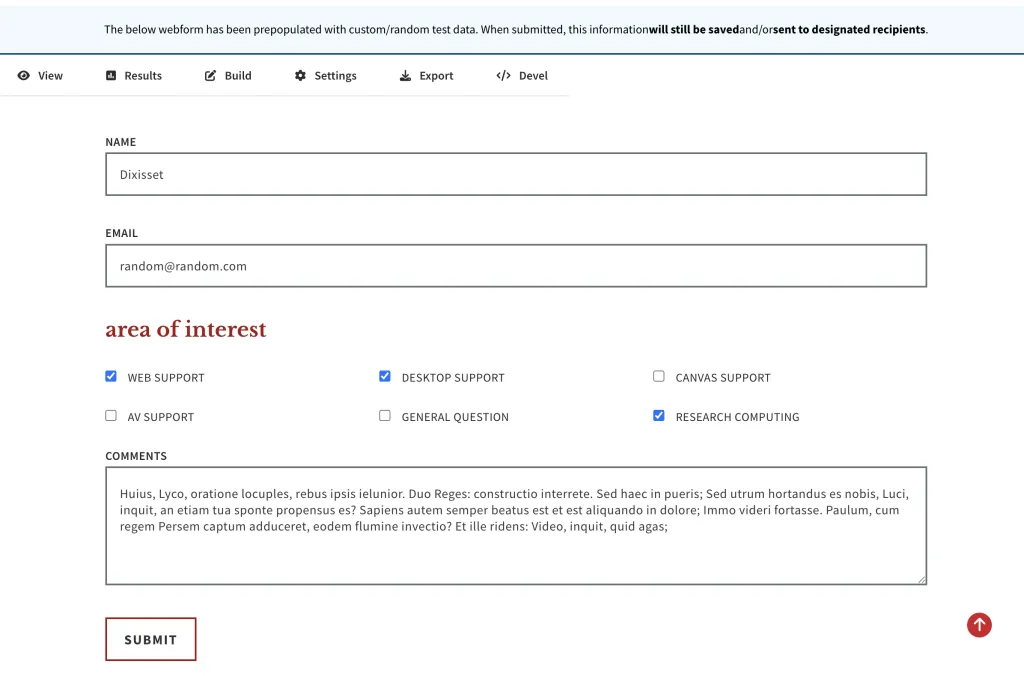 This will fill your form with test content. Click 'submit' to ensure your form is working.