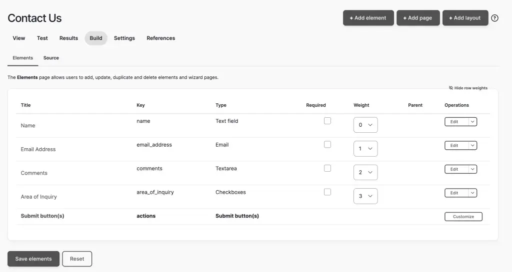 Once you have added all of your elements, click the 'save elements' button at the bottom.