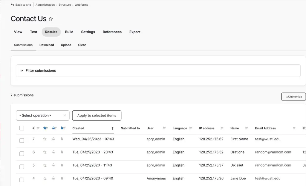 - Once you click on the title of the webform, navigate to the 'results' tab.