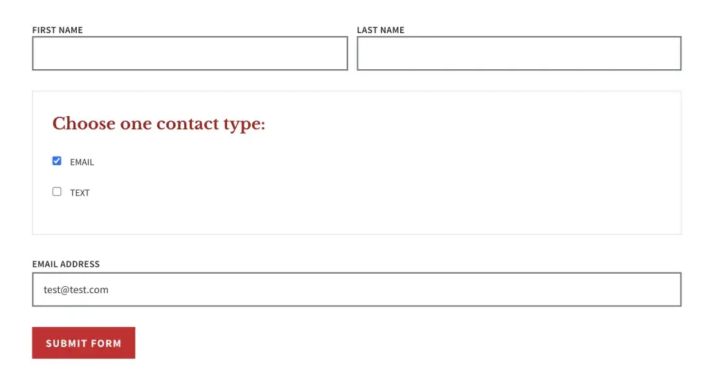 For example, if you have a form asking someone to choose text or email as a preferred contact method, you can trigger a phone number field or email field to appear based on which option they choose.